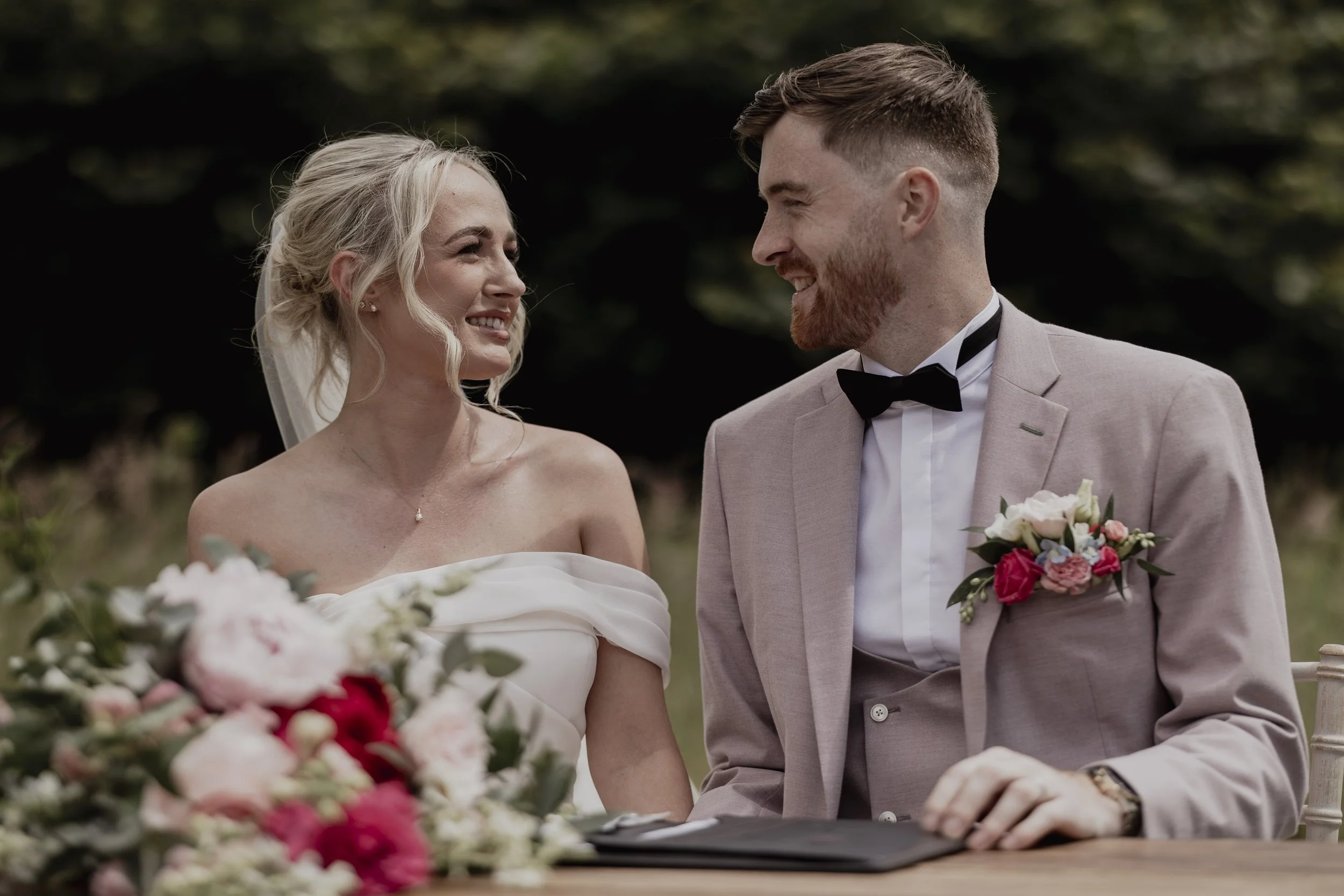 "Lily and the Fletcher’s Flowers team were absolutely incredible and a joy to work with. From our initial mood board and brainstorming meetings to the setup in the days leading up to our wedding, they were phenomenal in bringing our vision to life. They collaborated with us to transform our marquee venue into a stunning space, beautifully blending natural green foliage from the surrounding area with accents of dusty pink and white flowers.”